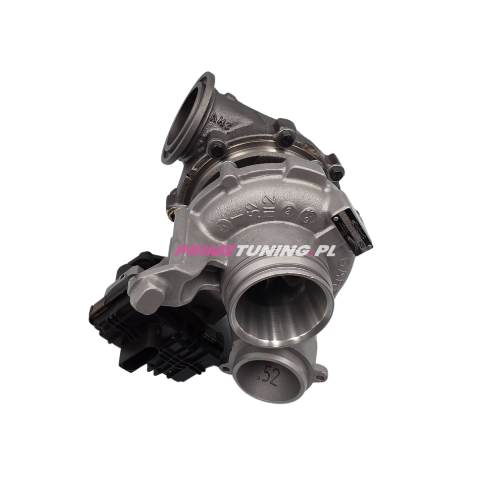 Turbosprężarka hybrydowa do silnika BMW N57 o fabrycznej mocy 258KM. Przygotowana na moce do 380KM. Turbo charakteryzuje się bardzo dobrym "wstawaniem" porównywalnym do seryjnej turbiny.